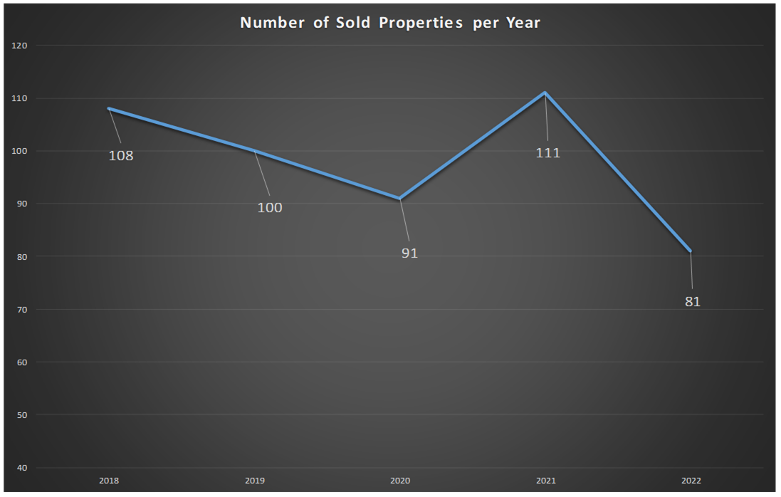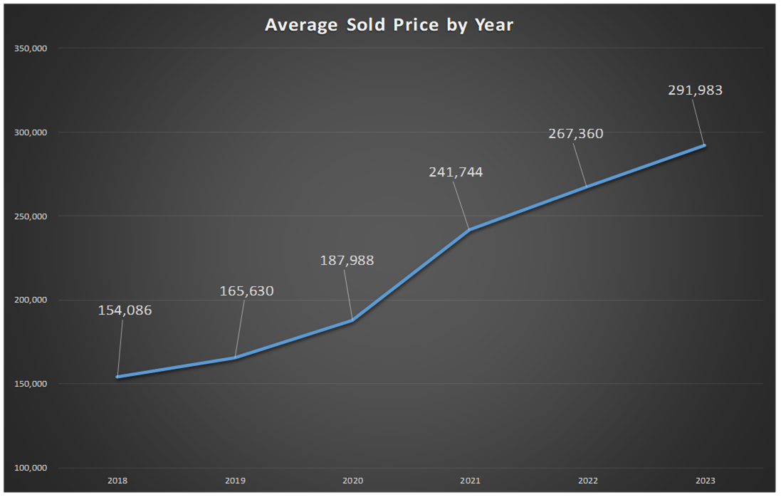The 5 year trend for the City of Sturgeon Bay inland, single family, residential property sales in 4 graphs. Brought to you by Steel Bridge Real Estate 920-662-6565